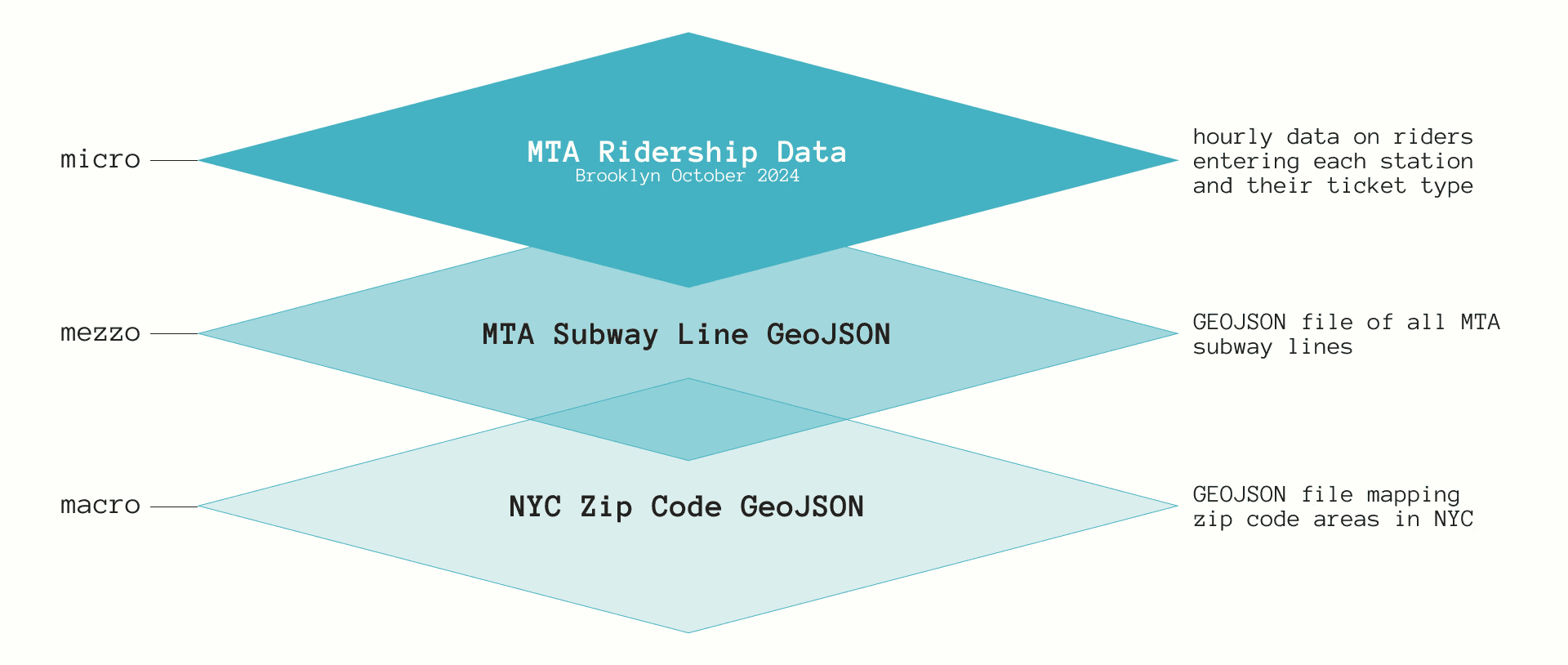 👀 I started exploring what kind of data the MTA makes public. It turns out, big cities like NYC have tons of open-source data available — so to build this visualization, I combined three different datasets.